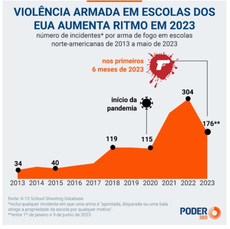 (9) Violência armada em escolas cresceu 794% em uma década nos EUA