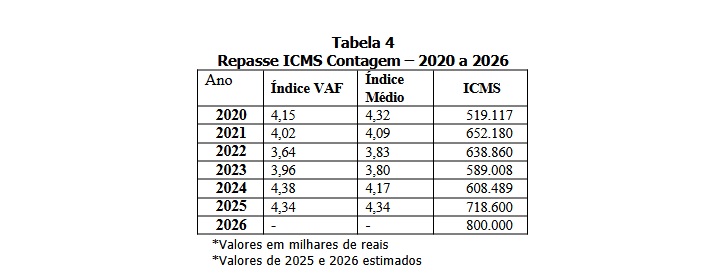 As violentas perdas do ICMS, principal imposto de transferência dos municípios, em 2022 e 2024, podem ser visto no caso de Contagem na tabela 4. Veja só: a) a receita corrente líquida da Prefeitura, entre 2020 e 2024 (terceiro governo Marília Campos), avançou 52,8% e o ICMS, no mesmo período, só avançou apenas 17,2%, o que não cobriu sequer a inflação do período de 27,69%; b) mas veja que o aumento do ICMS se deu de 2020 para 2021, quando subiu 25,62% e no período das mudanças violentas neste imposto, Contagem teve uma redução nominal deste imposto de 7% entre 2021 e 2024, quando o valor nominal recuou de R$ 652,180 milhões para R$ 608,489 milhões. Fica claro, portanto, que a situação fiscal dos municípios pós-pandemia piorou muito pela retomada ampliada dos serviços públicos, e, sobretudo, pelas perdas definitivas de parte do ICMS: lei de Bolsonaro e ICMS Educação, em Minas Gerais.(…) E veja como Marília acertou em pisar o pé no acelerador dos “investimentos” em Contagem, que fez de Contagem uma cidade mais competitiva e atraente para os investimentos privados. O maior crescimento de Contagem com o “desenvolvimentismo” de Marília Campos melhorou a vida da população em quatro anos; ampliou o crescimento da economia; e melhorou o VAF de Contagem, que é o critério de 75% do ICMS. Veja só: em 2025, o ICMS deverá passar de R$ 608,489 milhões para R$ 718,600 milhões, com crescimento expressivo de 18% para uma inflação inferior a 5%; e, em 2026, haverá um novo crescimento real estimado com a melhoria novamente do VAF, passando o ICMS de Contagem para aproximadamente R$ 800 milhões.